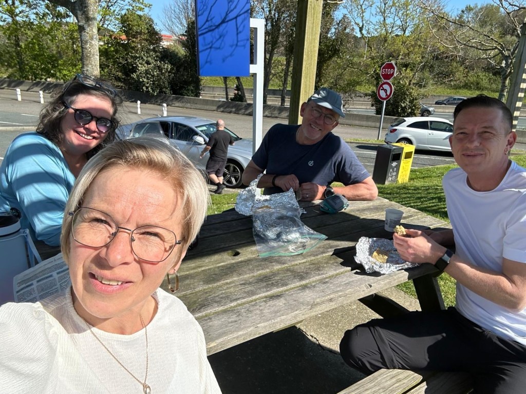 4 April-David and Heleen are on their way to Toulouse. After picking them up we will head to Pamplona. Well, we had to wait because there was some sort of delay with luggage. But finally were greeted with their smiling faces and warm hugs.