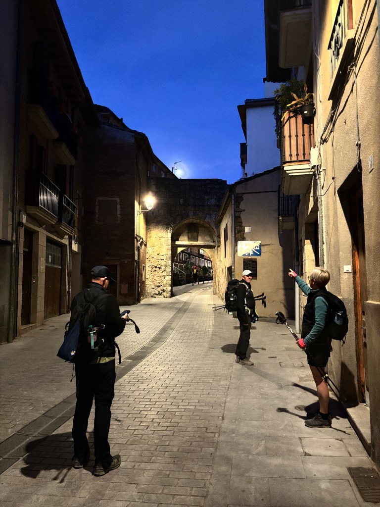 There is a nice little stop a few kms from Los Arcos. While sitting there we talked with a young g woman from china. We didn’t get her name but she gave us all a gift of a camino keychain.